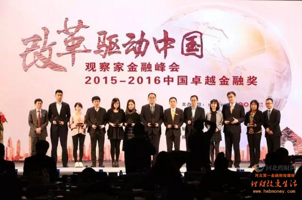 河北理财网讯 廊坊银行凭借在京津冀协同发展机遇中取得的亮眼业绩,连续两年获得国内权威财经媒体《经济观察报》授予的“中国卓越成长银行”奖项。日前,在北京举办的“2015-2016年度观察家金融峰会暨中国卓越金融奖颁奖典礼”上,《经济观察报》向廊坊银行战略总监费轶明授予该奖项。