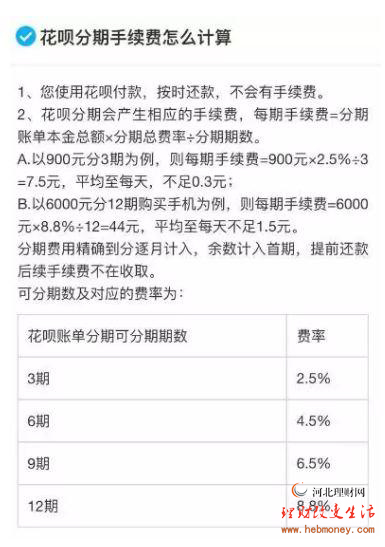 当然还有一种情况,就是借款期限不一样,月费率也不一样,比如某宝的花呗分期。