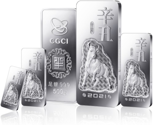 为配合中国农历“牛年”的到来,中国金币总公司于2020年9月18日限量发行2021辛丑(牛)年贺岁银条一组,这是继2008戊子(鼠)年贺岁银条后发行的第十四组产品,本组贺岁银条包括1000克、500克、200克、100克和50克5个规格,最大发行量分别为1300条、2200条、6000条、40000条和78000条,成色均为99.9%(含纯银)。