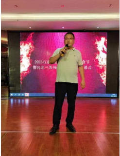 河北三苏书画院院长贾素凯,副院长卢鹏丶张良占,河北省民营企业发展促进会健康产业委员会会长刘杰,河北诸侯文化传媒有限公司董事长李福生,石家庄市长安区美术家协会副主席李贵,石家庄苏氏宗亲联谊会副秘书长苏永新在开幕式上先后讲话。