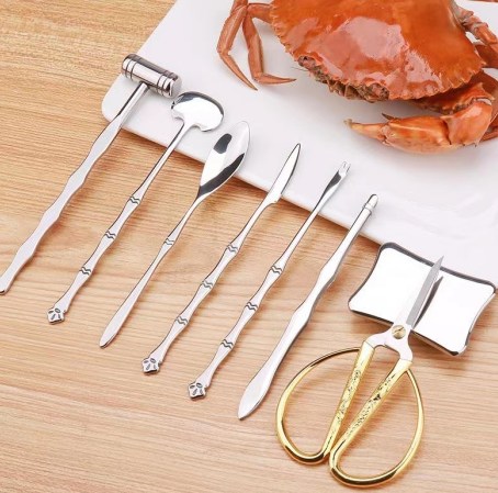 长柄勺(调羹):用来刮取蟹黄或蟹膏,可以用勺子将其送入口中。