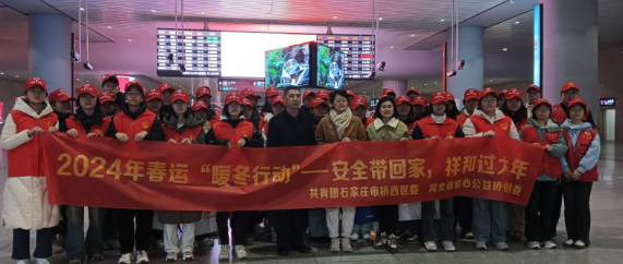 春运期间返乡人流激增,为广泛宣传应急安全常识,提升全民安全防范意识,助力春运期间安全稳定工作,自2014年开始,河北已连续11年开展“安全带回家 祥和过大年”主题志愿服务活动。活动现场设置宣传台、咨询点,张贴或摆放防灾减灾、应急避险、就业、劳动保护、消防、交通等安全知识挂图或展板,志愿者们向过往旅客发放应急安全宣传“五进”宣传册、安全出行知识折页、“福”字、春联等宣传品,宣讲应急和安全知识,开展出行引导等爱心服务,营造平安、祥和的节日安全氛围。