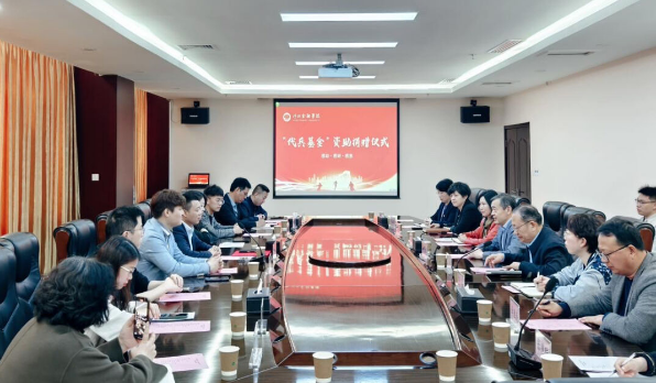 “代兵基金”由校友杨代兵于2022年设立,每年向母校捐赠人民币5万元,资助10名学生。仪式上,韩景旺对杨代兵一行表示热烈欢迎和衷心感谢,简要介绍了学校近年来的发展概况,并向杨代兵颁发捐赠证书。韩景旺表示,杨代兵校友在捐赠的同时,返校招聘助力就业,彰显了对母校的热爱和深情厚谊,校友的捐赠不仅仅是对学校的物质支持,更是对学校大学精神和大学文化的传承和发扬。杨代兵校友用实际行动诠释了“明德守信、求真尚行”的校训精神,为该校毕业生和在校生树立了榜样。广大师生要将这种精神内化于心、外化于行,将其融入学校发展的每一个环节,助力学校在未来的道路上行稳致远。
