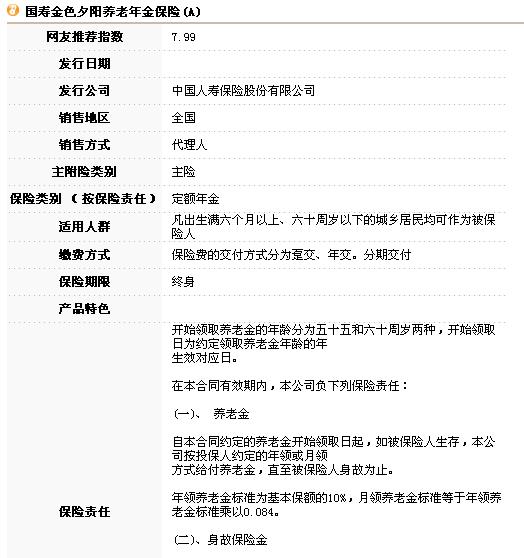 国寿金色夕阳养老年金保险(A)-中国人寿-产品超市-保险-河北理财网—河北权威财经门户