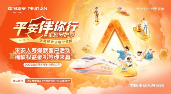 河北理财网综合(刘杰)河北理财网获悉,6月27日,平安人寿“平安伴你行”客户活动重磅上线。本次活动以“家庭守护季”为主题,从亲子、生活、医养、财富4大维度出发,涵盖形式丰富的线上互动与线下精彩活动,汇聚珍稀资源、百万豪礼,打造四大平安主题“专列”,覆盖客户的多样化需求,全方位陪伴每个家庭的美好生活旅程,以专业让每个家庭拥有平安。