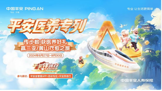 平安医养“专列”带领用户云游山海盛景,用户每日上传步数云游打卡,沿途了解自然风光、人文历史,抵达云游目的地后,即可抽取医养主题好礼,更有机会赢取三亚/黄山疗愈之旅。