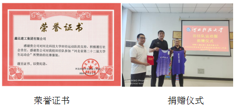 随后,河北科技大学体育部和鑫达建工集团举行捐赠仪式和颁发荣誉证书。在科大运动场,与会人员见证田径队风采,鼓舞士气,加强训练、力争上游。
