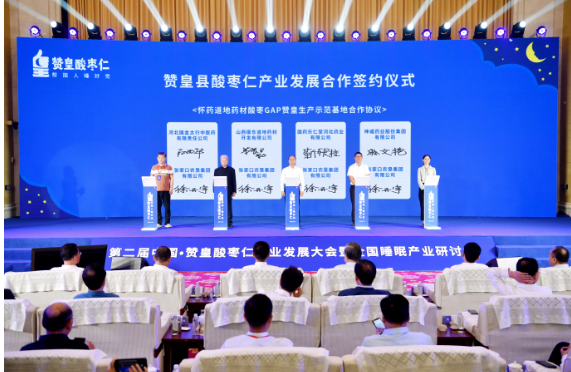 同时,神威药业、以岭药业、国药同济堂、国药乐仁堂、亳州市瑞荞鑫药业、四川新荷花中药饮片、山西药之堂药业等国内知名药企分别与赞皇县多家药企和种植基地分别签署酸枣仁产地直采协议和酸枣GAP生产示范基地合作协议。赞皇县农业农村局与张家口农垦集团、河北省中药材学会签订中国赞皇酸枣特色种业创新基地合作协议。亳州市药通、亳州万草堂与赞皇县惠康公司签订酸枣仁电子交易平台战略合作协议。
