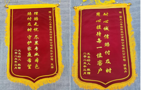 “从申请到到账,每一步都有人主动跟进,这样的速度让我们全家都安心了。”周女士的儿子科先生感慨道。为表谢意,他专程为理赔团队送上锦旗——“理赔无忧,尽显专业本色”“赔付及时,守护家庭希望”的字句,道出了客户对阳光服务的高度认可。
